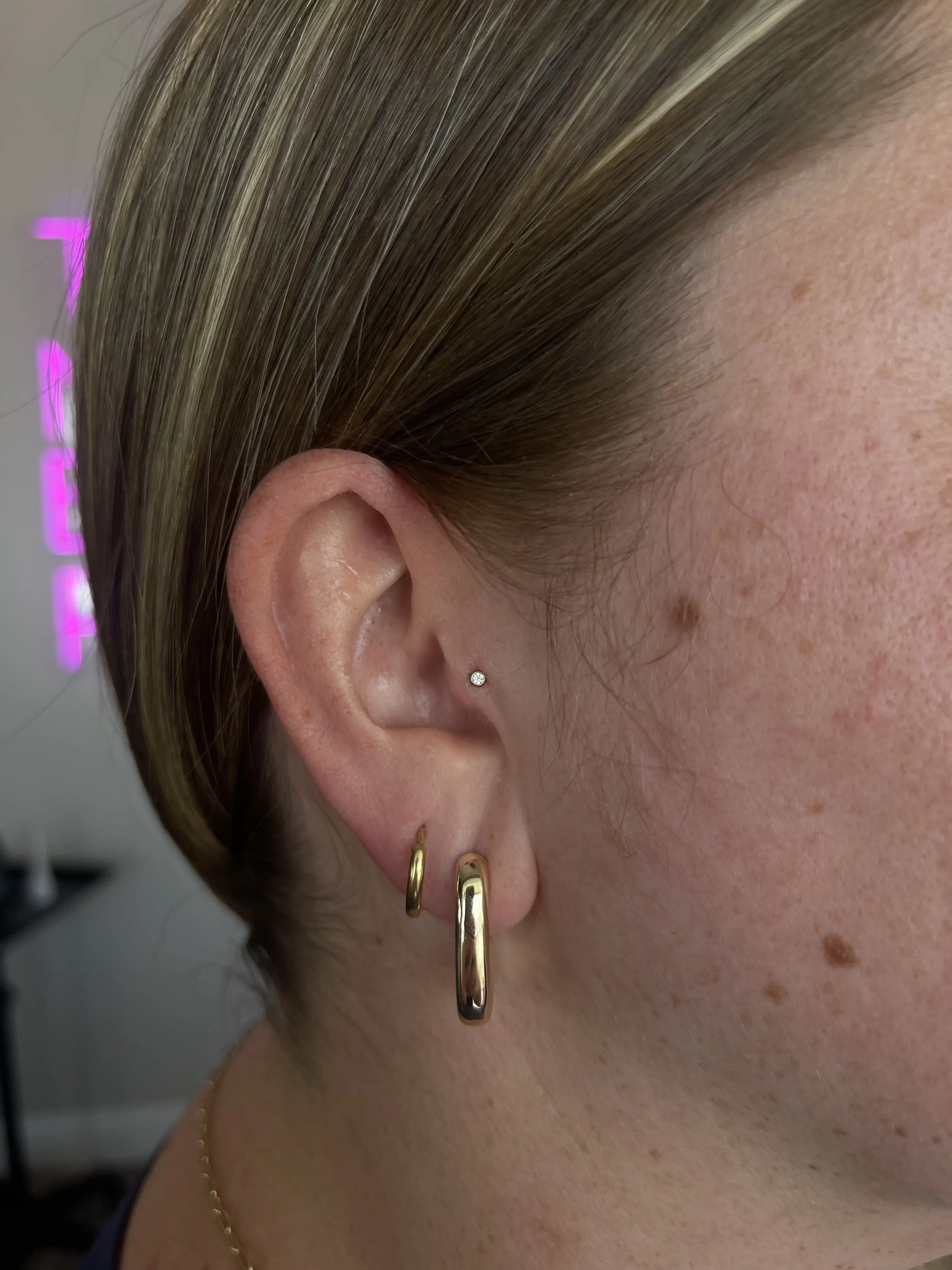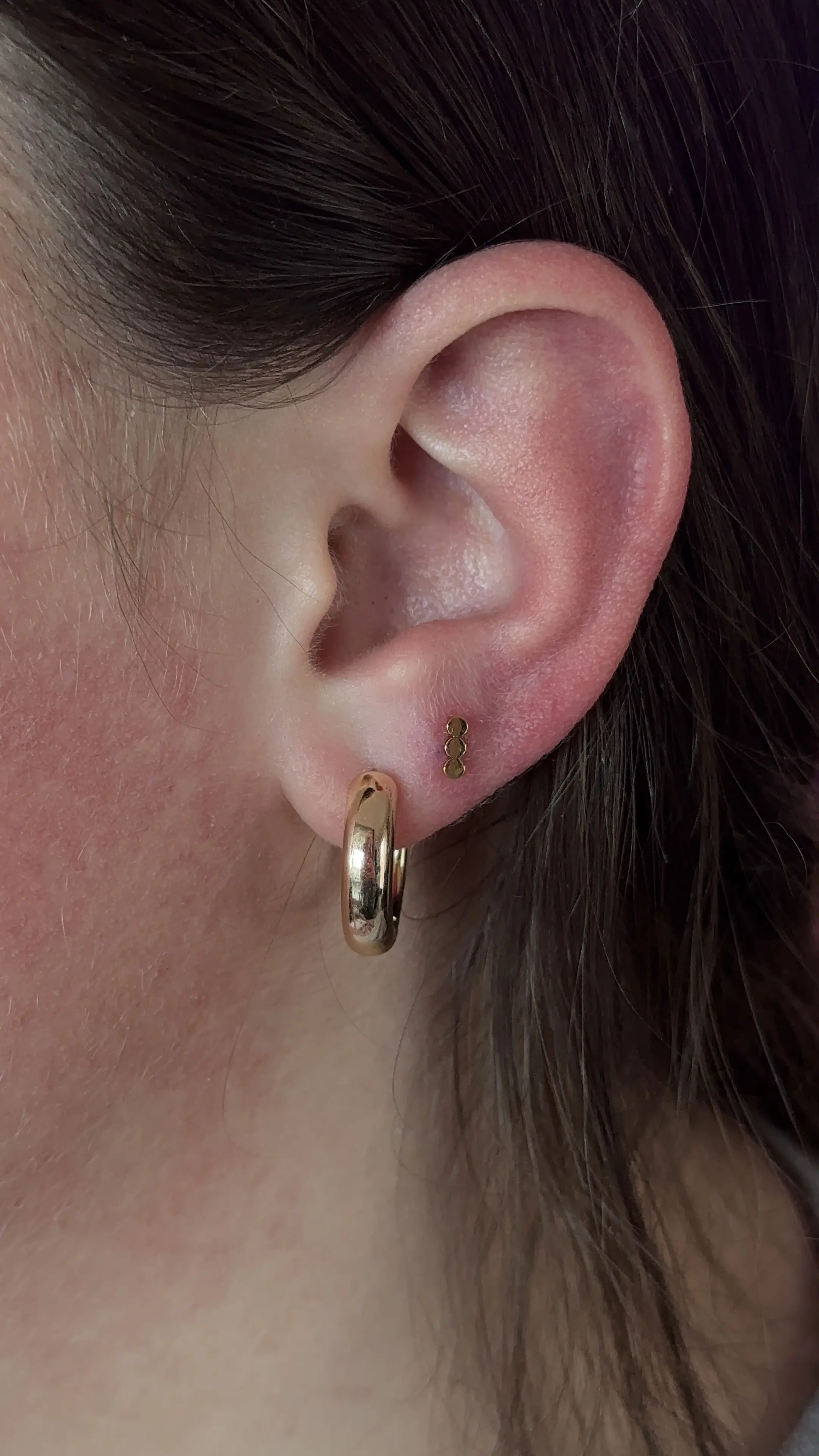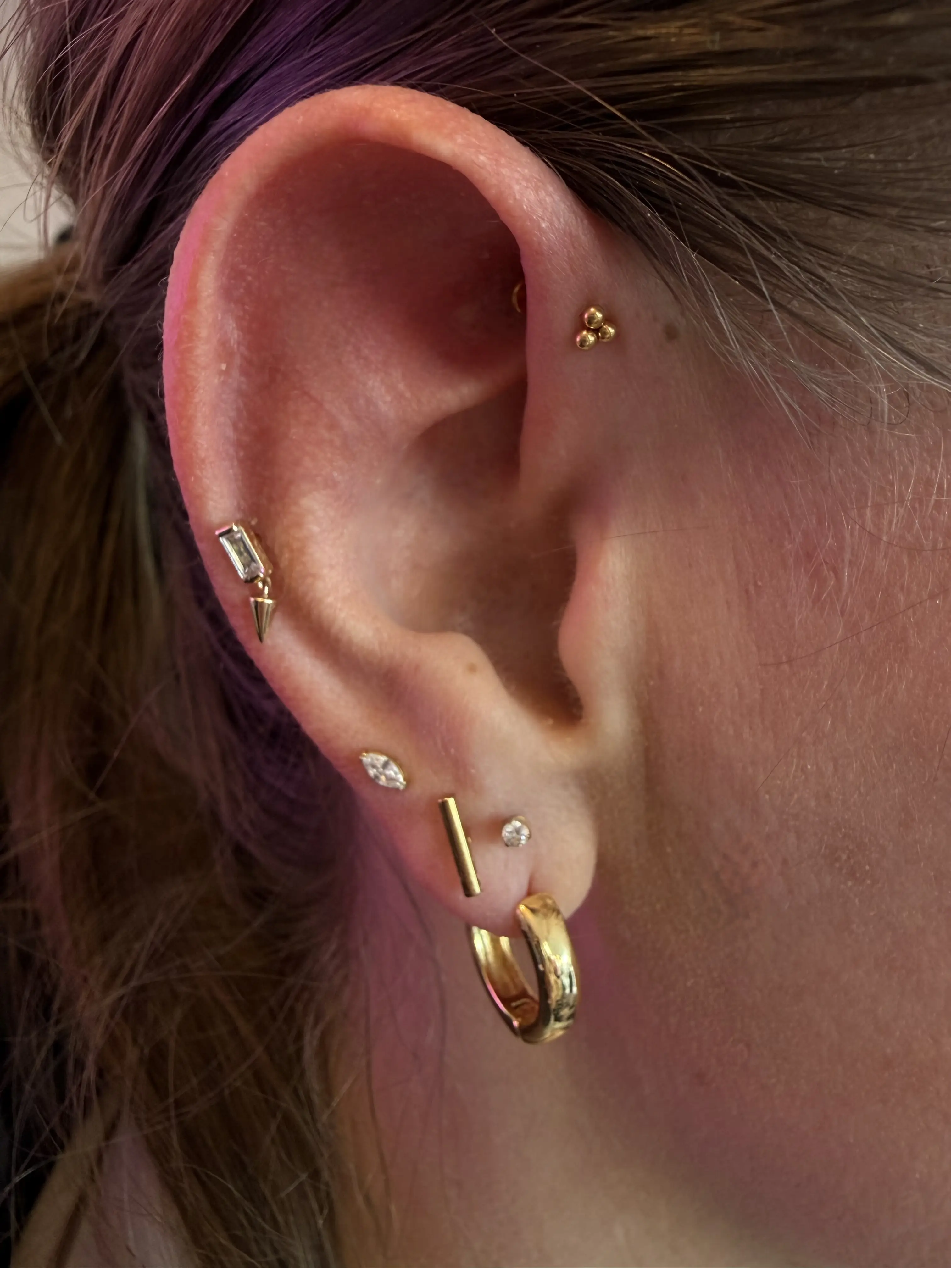 •For minors book in the “minors” section• The constellation piercing is the perfect addition to the lobe, although, not everyone has the correct anatomy for it. Often times it’s used to fill in extra space between a first and second hole that are a little too far apart giving it more of a balanced look. Typically pierced with a dainty piece of jewelry given the location, it adds the cutest touch to your ear. *Before confirming the appointment I will ask for a good picture of your ear to see if you appear to have enough space.*