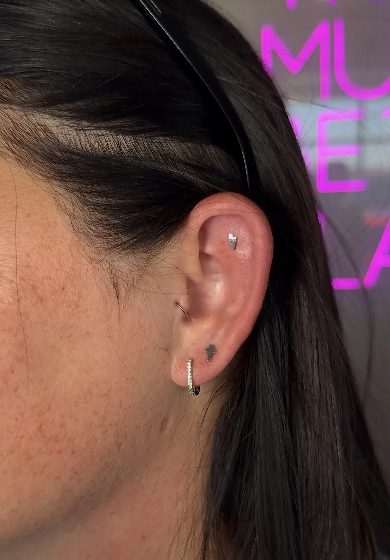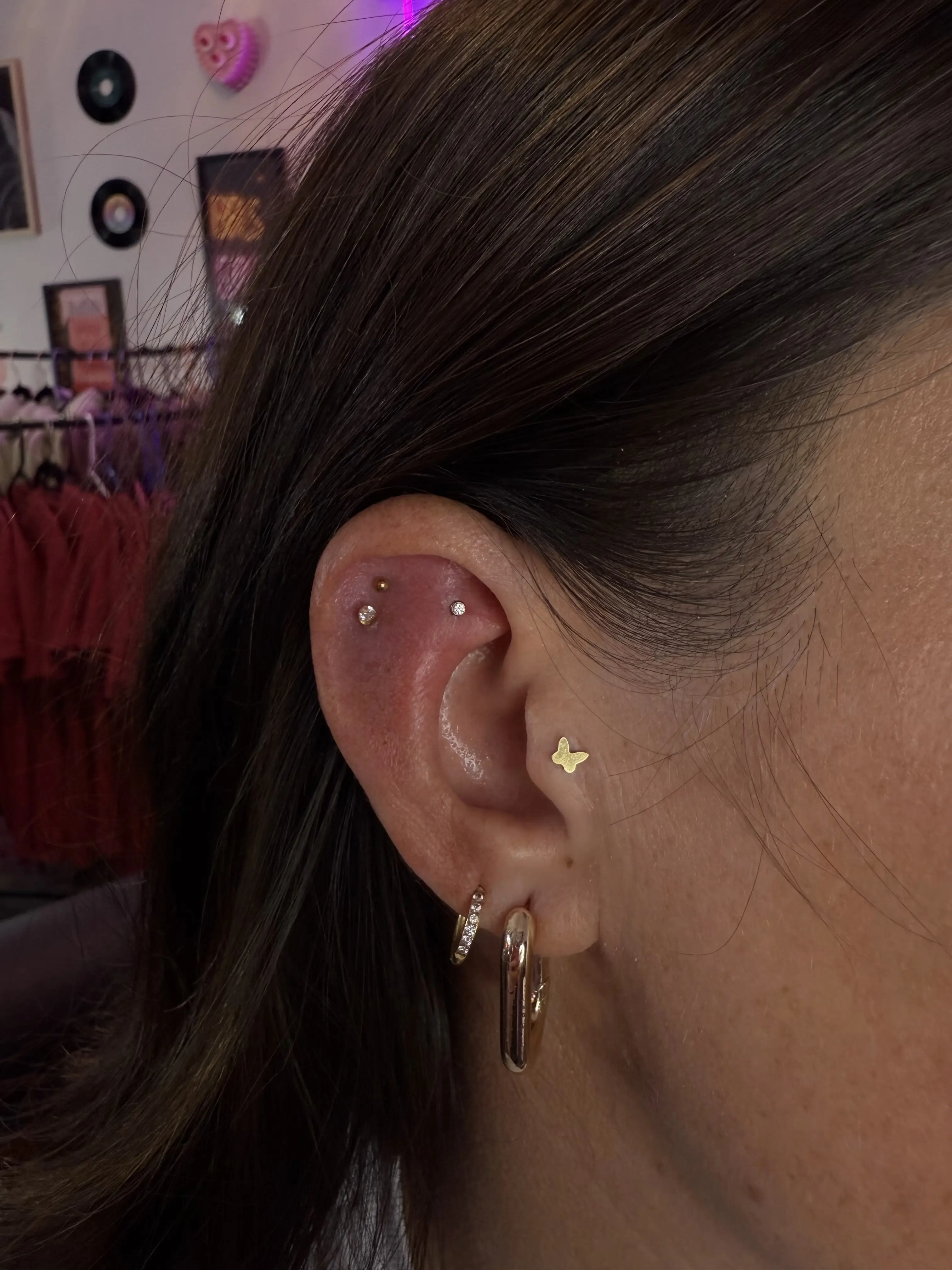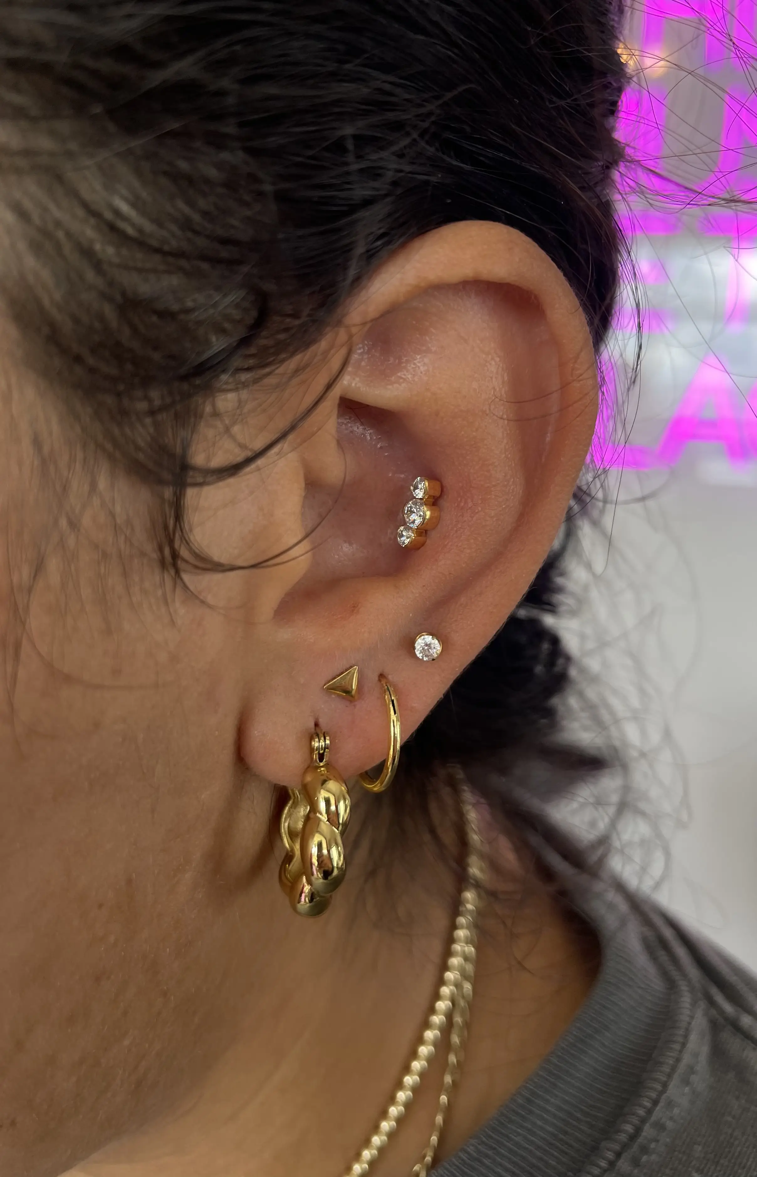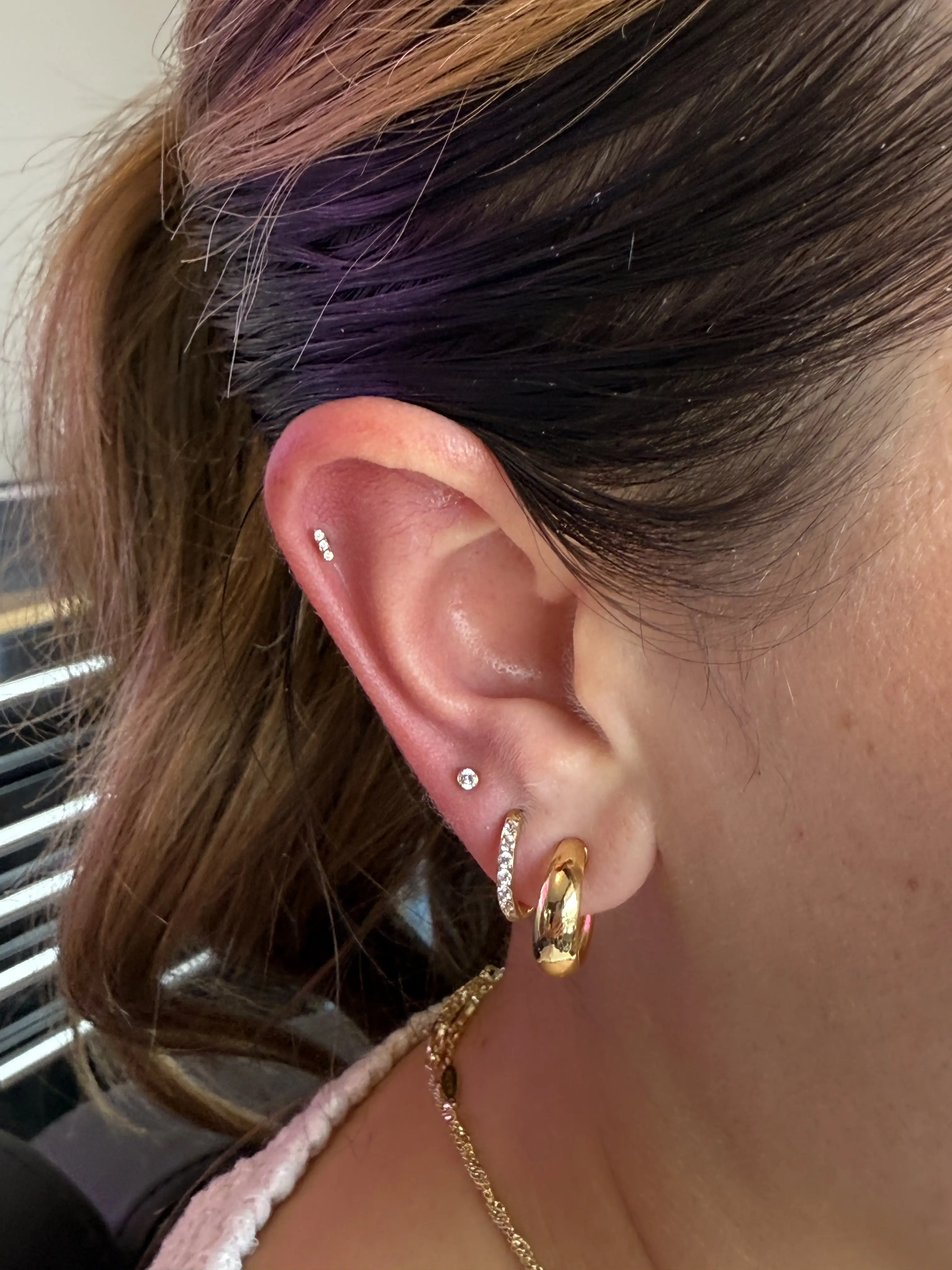 •For minors book in the “minors” section• The constellation piercing is the perfect addition to the lobe, although, not everyone has the correct anatomy for it. Often times it’s used to fill in extra space between a first and second hole that are a little too far apart giving it more of a balanced look. Typically pierced with a dainty piece of jewelry given the location, it adds the cutest touch to your ear. *Before confirming the appointment I will ask for a good picture of your ear to see if you appear to have enough space.*