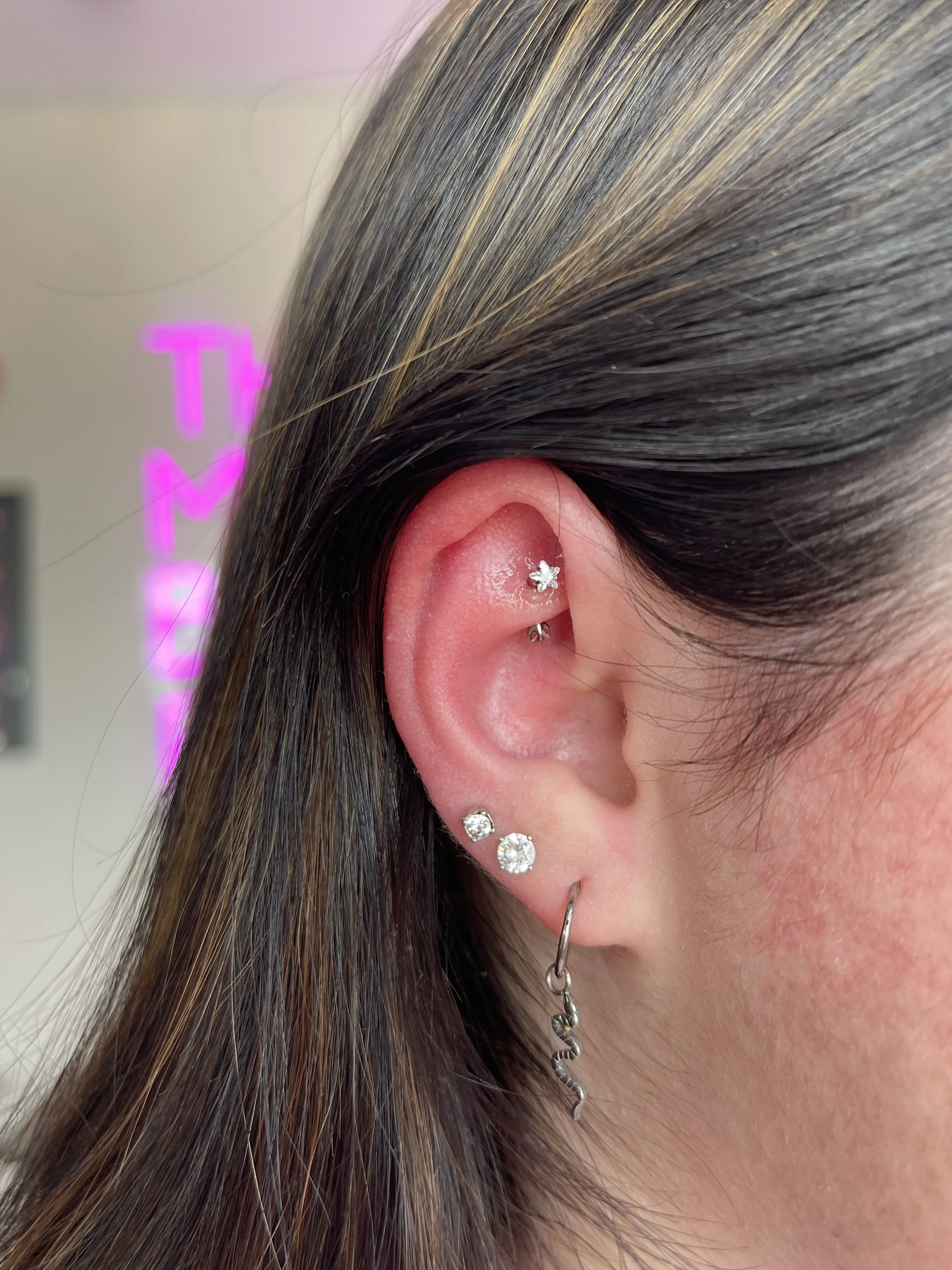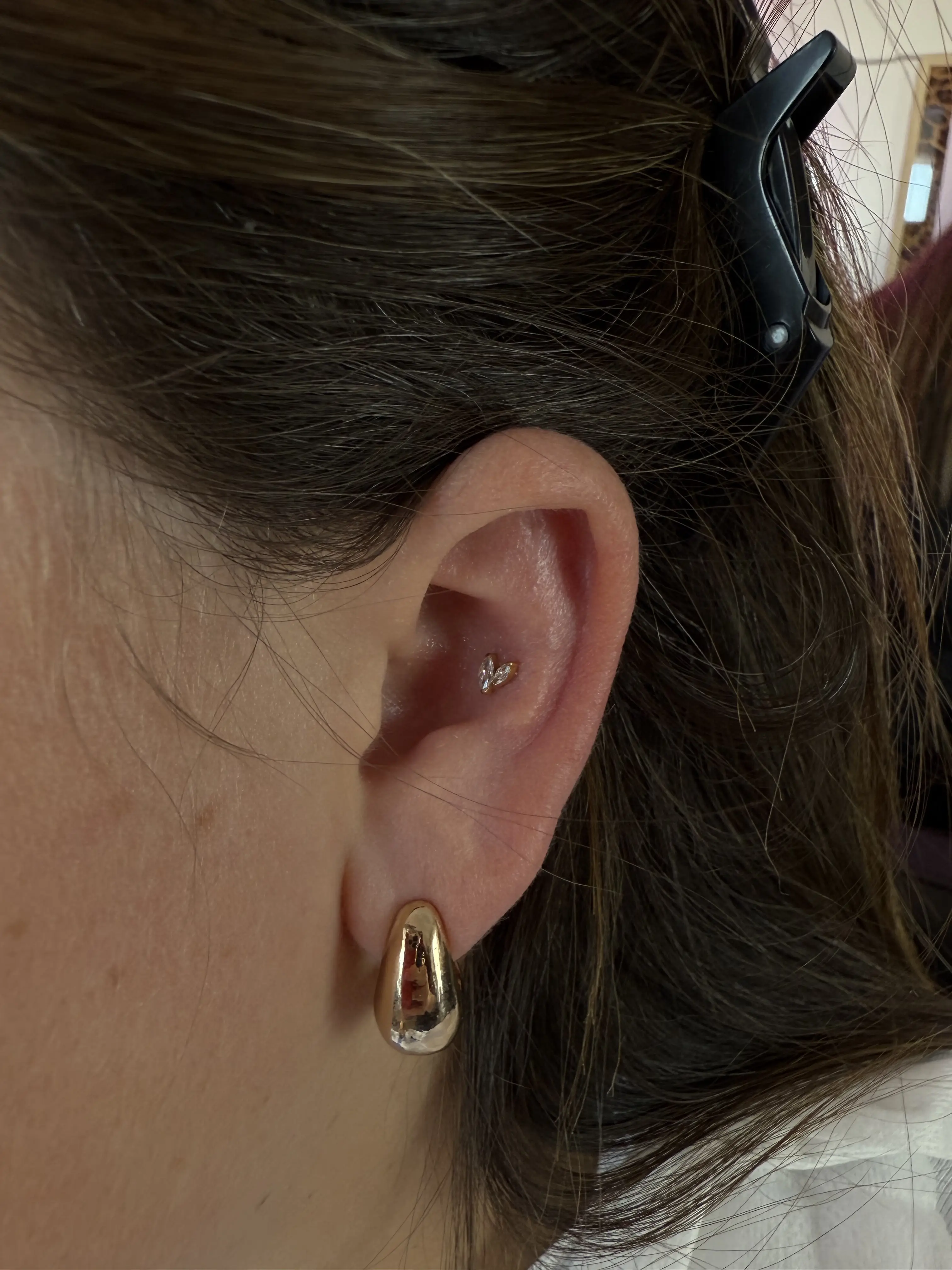 •For minors book in the “minors” section• The forward helix sits right at the ear’s forward curve next to the face—perfect whether you’re into delicate minimalism or bold statement pieces. Bethanie will use a single use hallow needle and offers only the best material for your jewelry — implant-grade titanium. Once fully healed you can switch between studs or a dainty hoop to match your style. *Anatomy dependent*