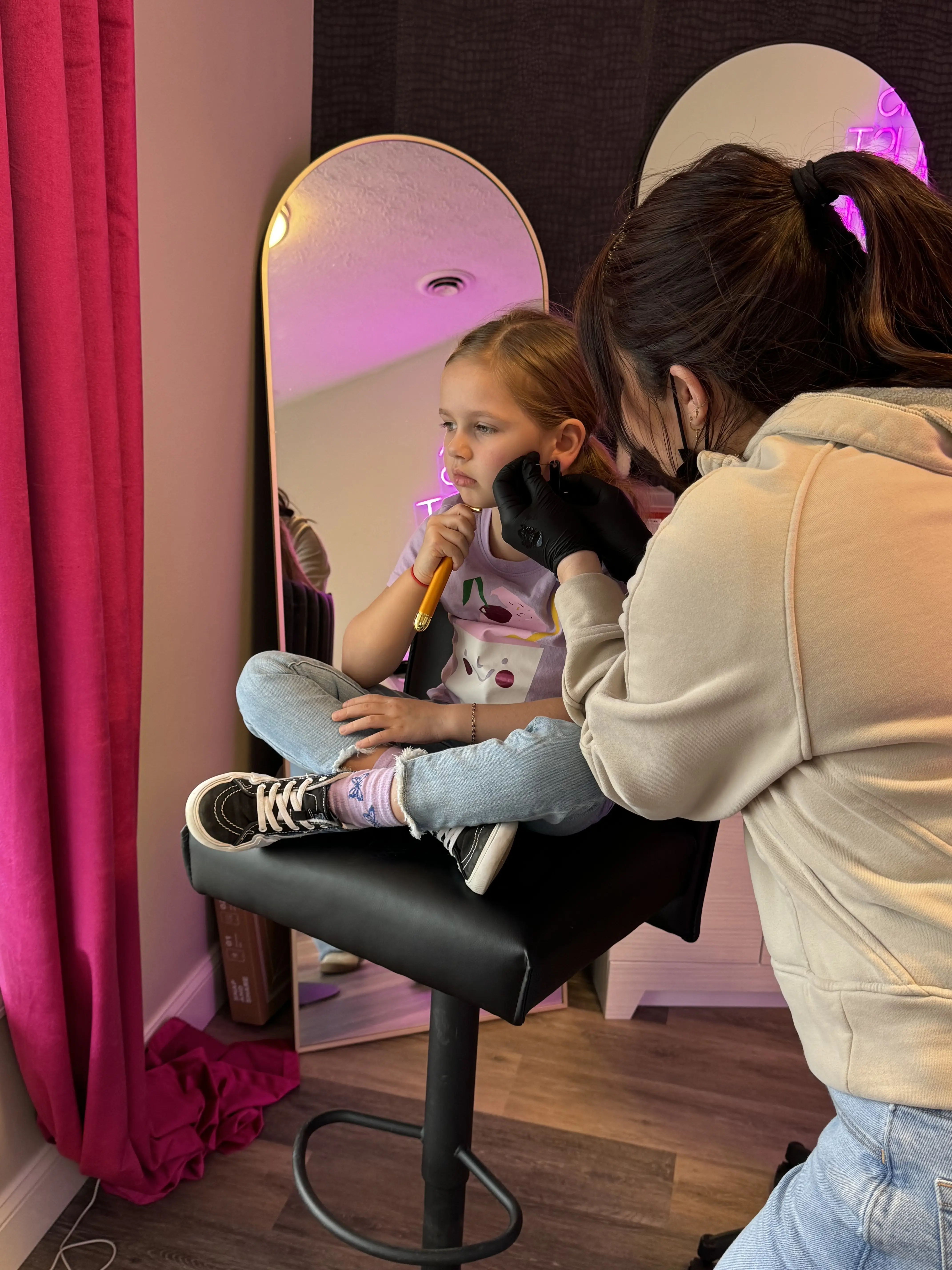 For kids age 5-10 years old. 3 requirements for minors to receive a piercing service required by state law 1. NOTARIZED consent form prior to the appointment (please provide your email so I can send the documents over). 2. Birth certificate, acknowledgment of paternity, adoption decree or letter of guardianship, stating who the legal parent/guardian is. 3. The legal parent or guardians valid identification must match the legal parent or guardian on the legal documentation. Parent or guardian must be present for the entirety of the appointment. The appointment is 45 mins, if we are unable to complete both ears we will have to reschedule and the full $90 will be due.