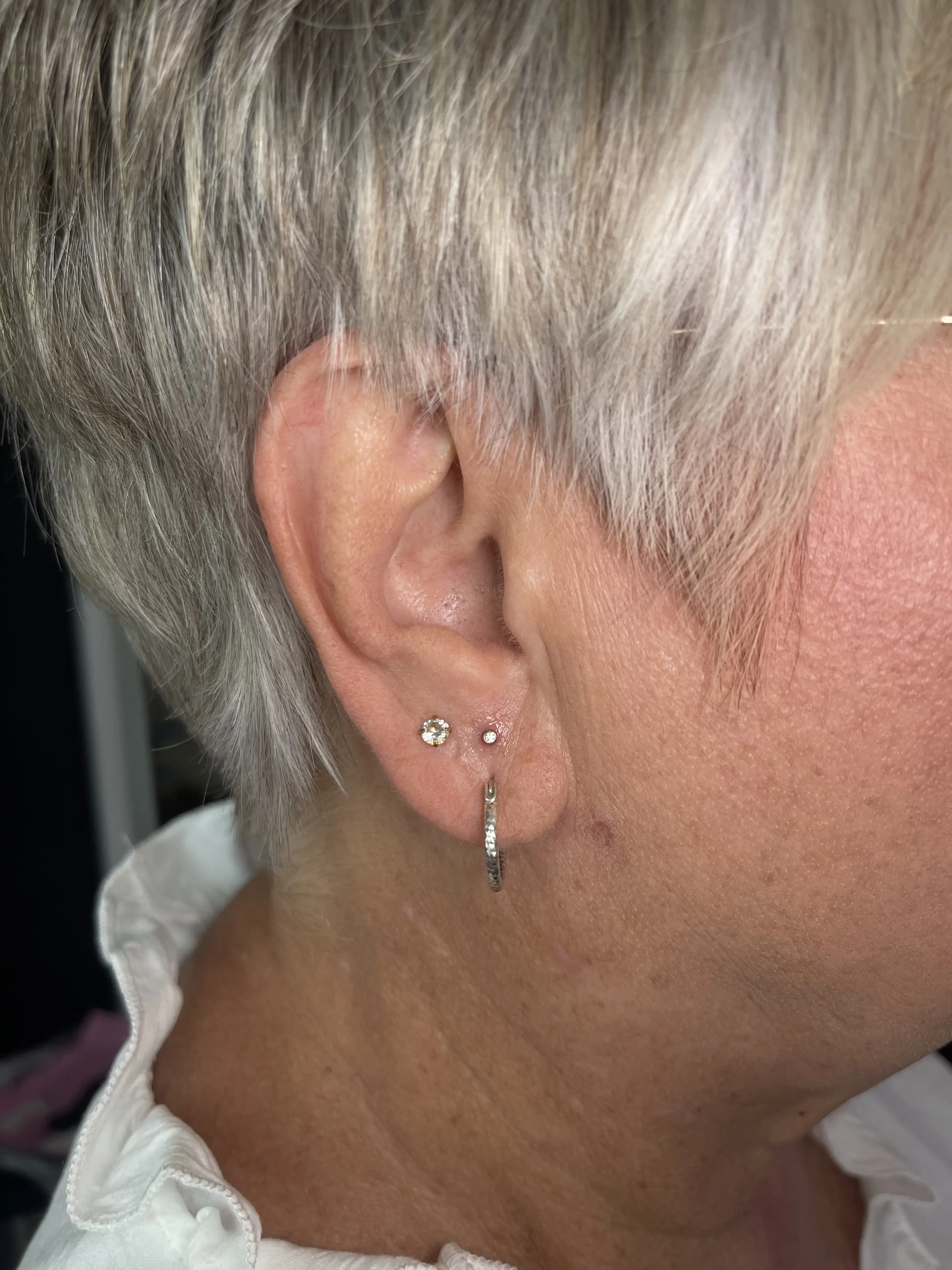 This service is free for clients I have pierced. One free downsize per piercing. New clients wanting to change jewelry need to book “jewelry styling” appointment. One of the most important parts of your aftercare is downsizing the post. Bethanie pierces with a longer post to accommodate for swelling that may occur. You are welcome to reach out before making the appointment as some parts of the ear and some clients don’t require a downsize. This makes the jewelry sit more flush to the ear and prevents extra snagging from things like hair and masks.